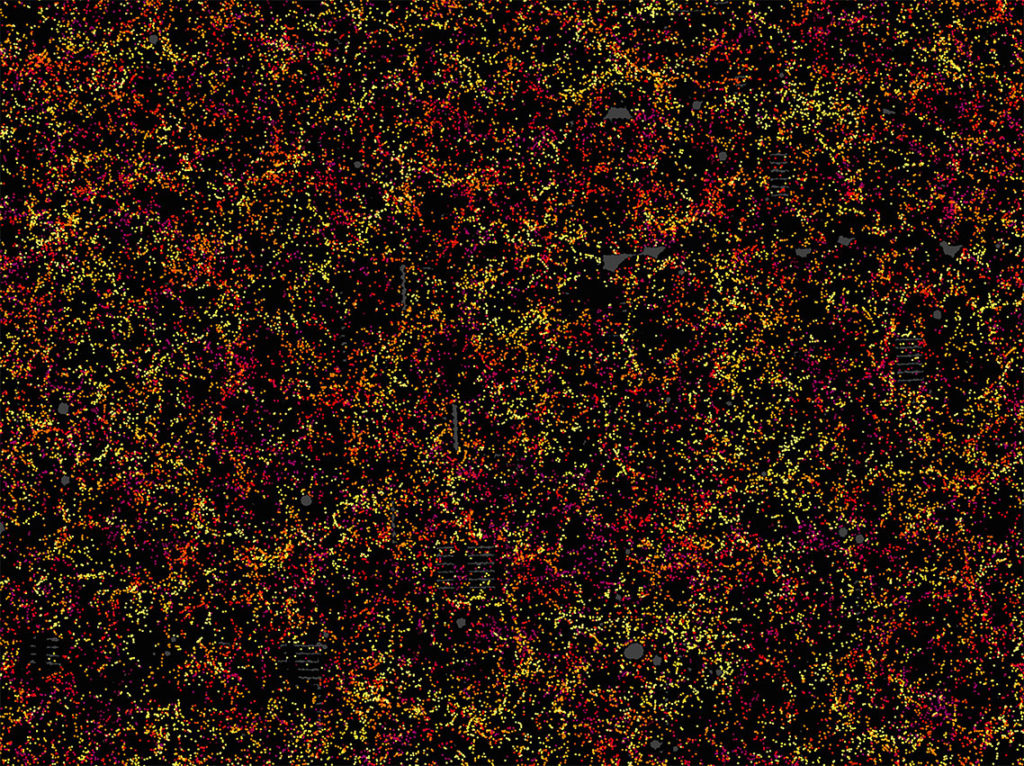 Baryon Oscillation Spectroscopic Survey (BOSS) tarafından hazırlanan harita, Evren’in genişlemesini sağlayan esrarengiz enerjinin daha iyi anlaşılmasını amaçlıyor.