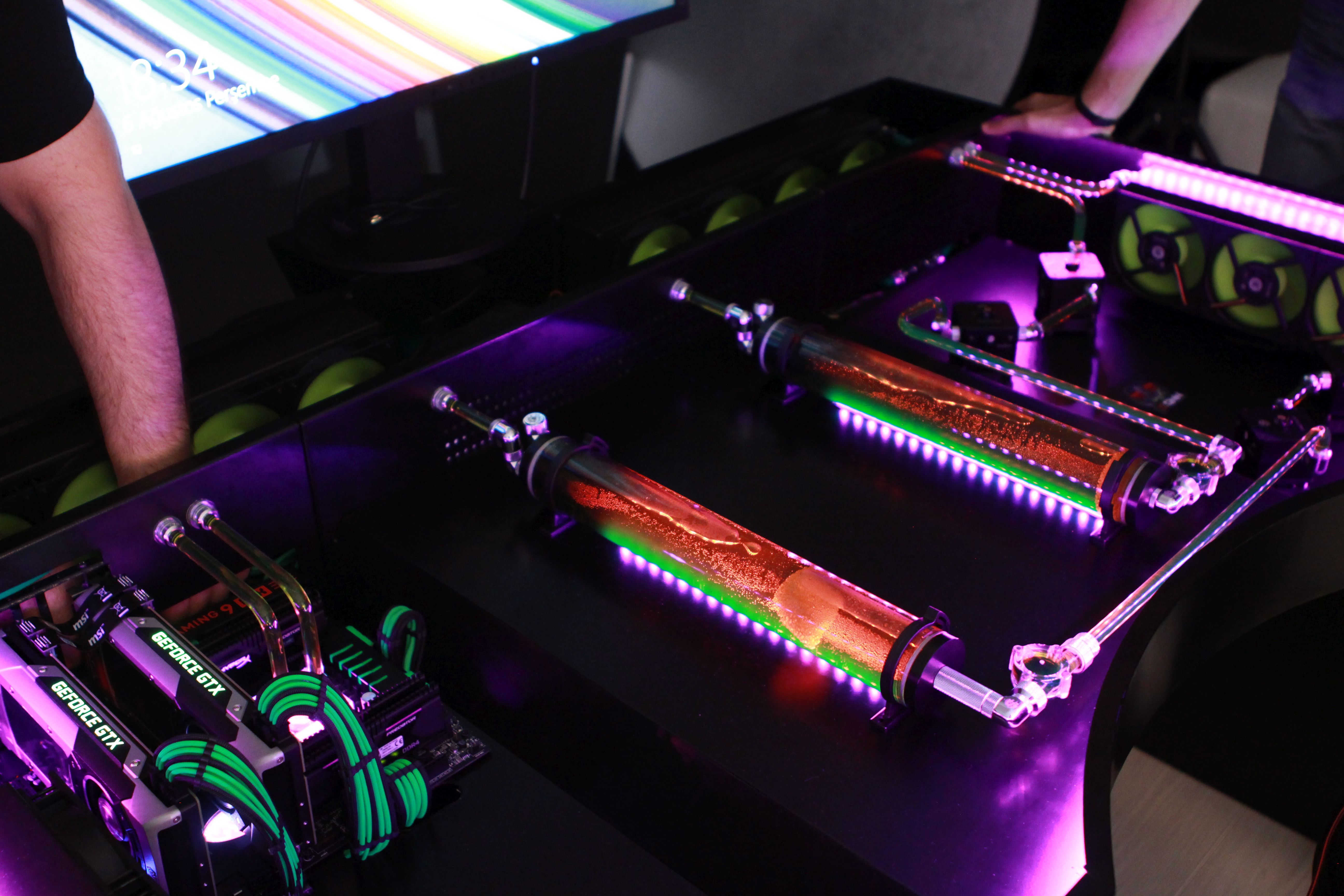 Nvidia Türkiye’nin gerçekleştirdiği en son Geforce Garage etkinliğinde toplanan CONN Single Desk M6 Ultimate Gaming Edition, sıvı soğutmalı bir makineyi temsil ediyor.